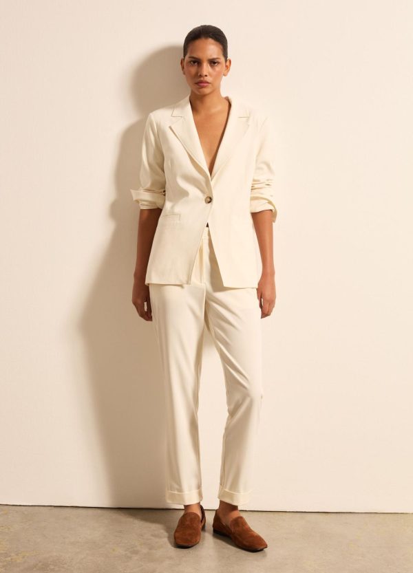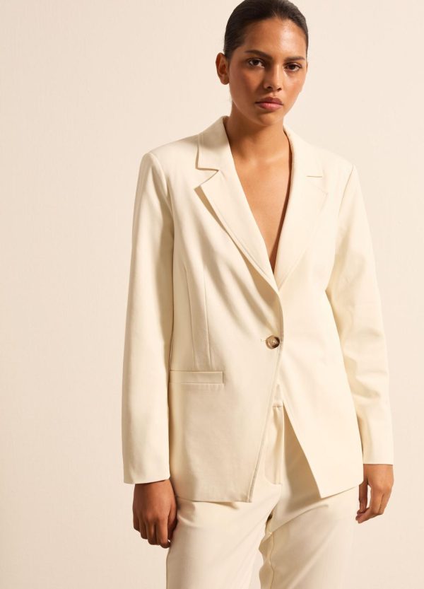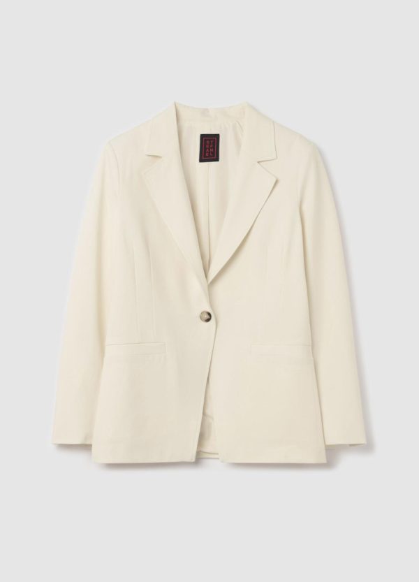 Blazer realizzato in misto viscosa stretch. Vestibilità regolare. Collo con revers. Due tasche orizzontali a filo. Spacchetti al fondo manica. Chiusura monopetto con bottone. Componibile con pantalone abbinato.