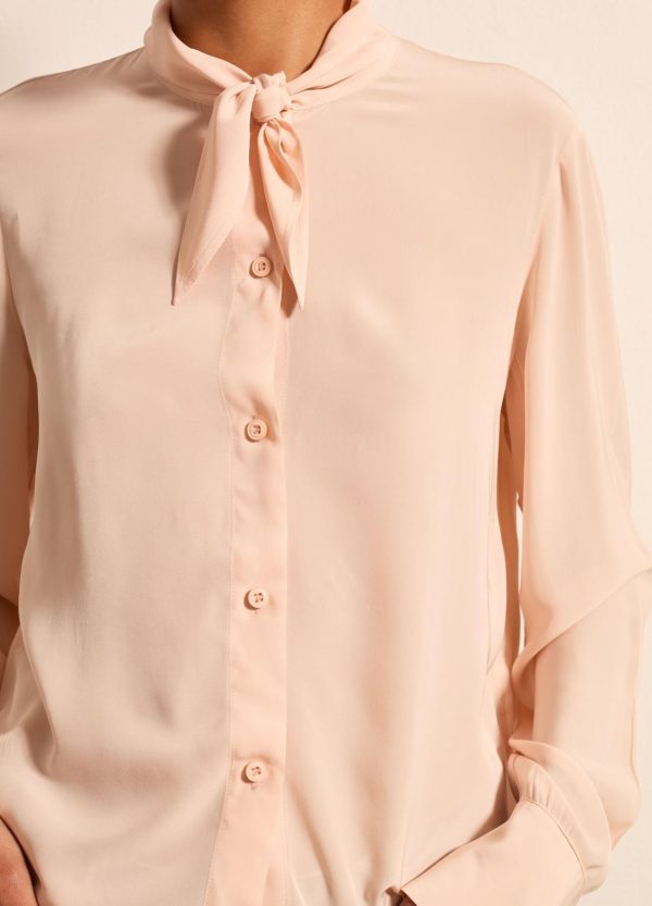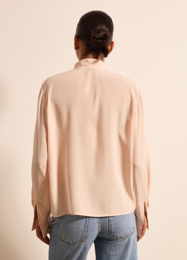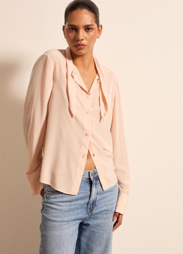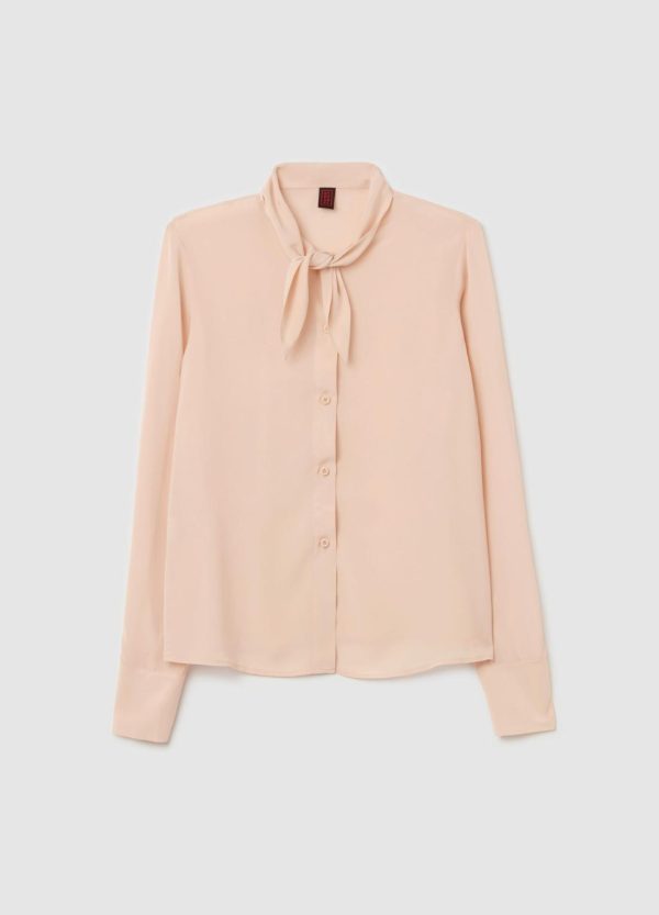 Camicia realizzata in viscosa sostenibile certificata FSC® e seta. Vestibilità regolare. Foulard annodato intorno al collo. Bottone ai polsi. Chiusura con bottoni.