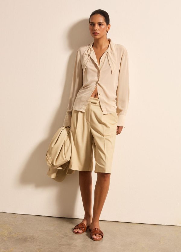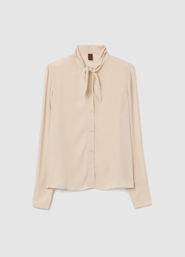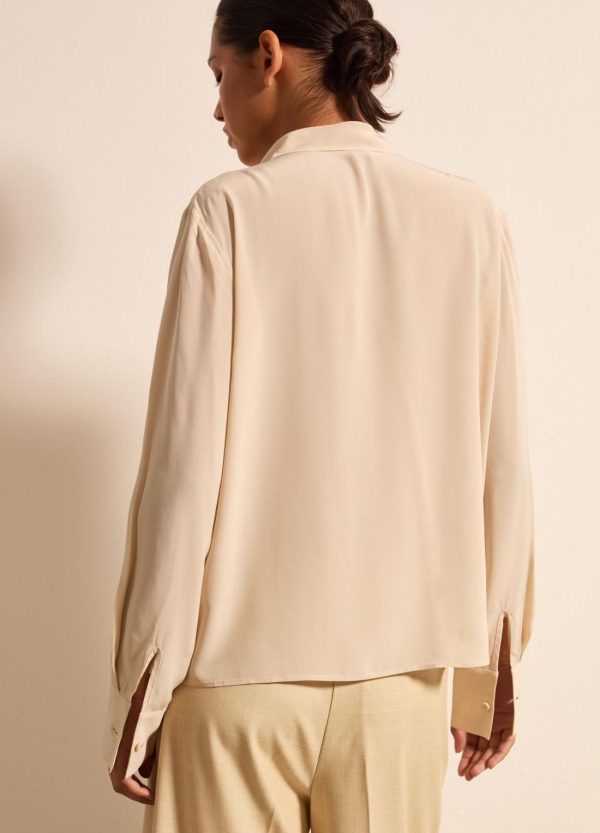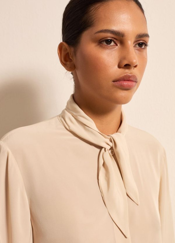 Camicia realizzata in viscosa sostenibile certificata FSC® e seta. Vestibilità regolare. Foulard annodato intorno al collo. Bottone ai polsi. Chiusura con bottoni.