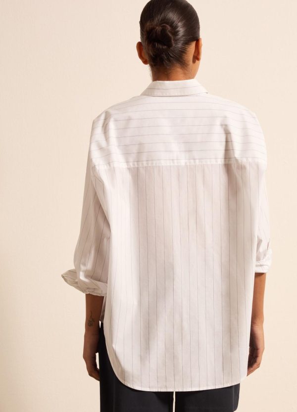 Camicia gessata realizzata in popeline di puro cotone. Vestibilità regolare. Colletto classico. Carré sul retro. Tasca sul petto. Bottone ai polsi. Chiusura con bottoni.