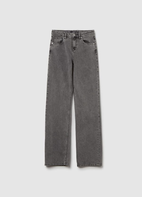 Jeans straight fit realizzato in puro cotone con trattamento acid wash. Cinque tasche. Chiusura con bottone e zip. Questo capo e stato realizzato con l’utilizzo di cotone proveniente da una coltivazione piu sostenibile.