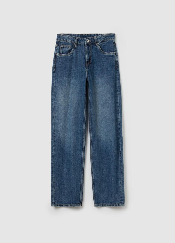 Jeans straight fit realizzato in puro cotone con scoloriture. Cinque tasche. Chiusura con bottone e zip. Questo capo e stato realizzato con l’utilizzo di cotone proveniente da una coltivazione piu sostenibile.