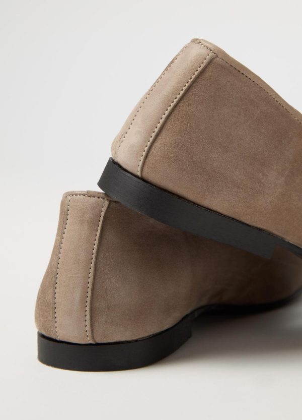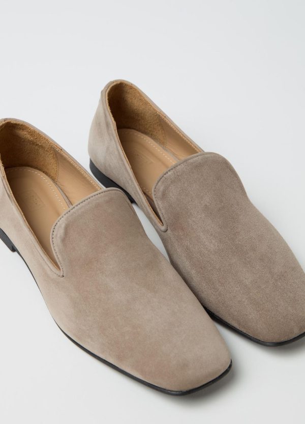 Mocassino con punta squadrata realizzato in vera pelle scamosciata.