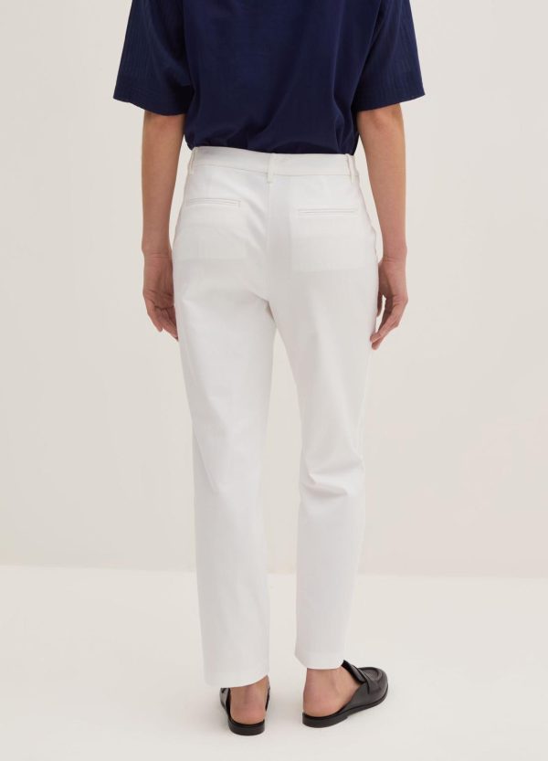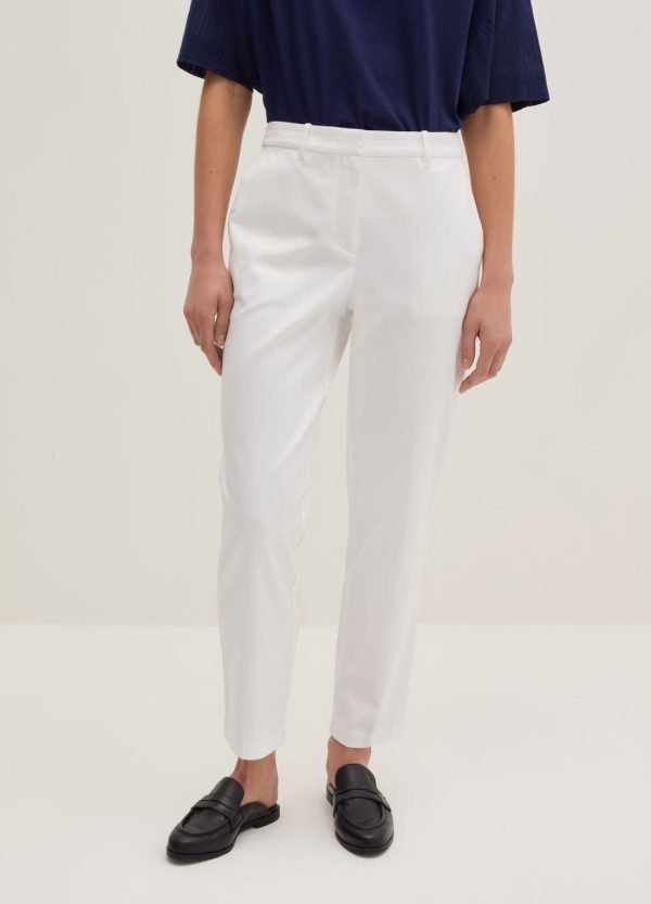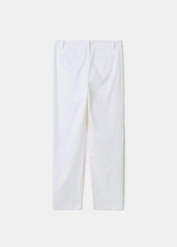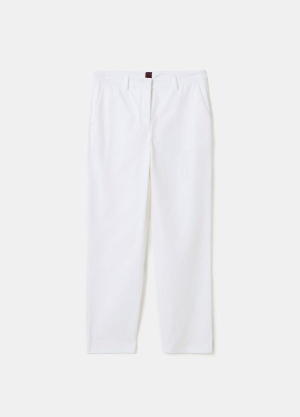 Pantalone a sigaretta in twill di cotone elasticizzato. Due tasche oblique e due tasche a filo sul retro. Chiusura nascosta con gancio interno, bottone e zip. Lunghezza sopra la caviglia.