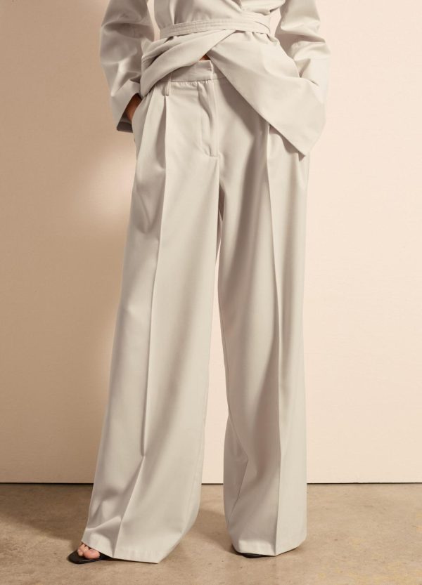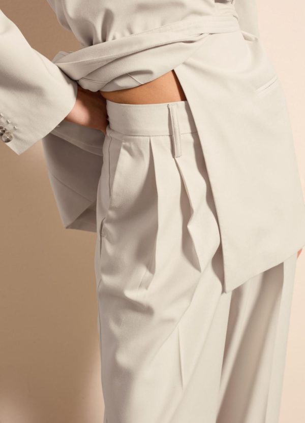 Pantalone slouchy realizzato in misto viscosa. Vita alta con pinces laterali. Due tasche oblique. Chiusura nascosta con gancio interno e zip. Componibile con blazer abbinato.