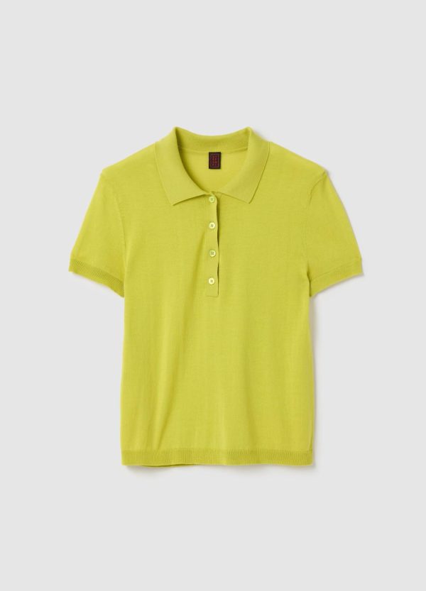Polo realizzata in Lyocell, cotone e seta tinta unita. Profili rifiniti a costine. Vestibilità regolare.