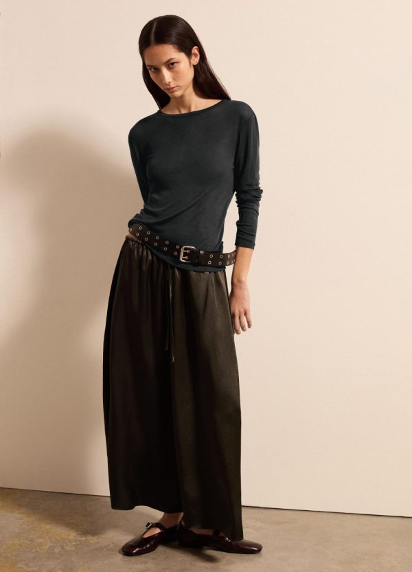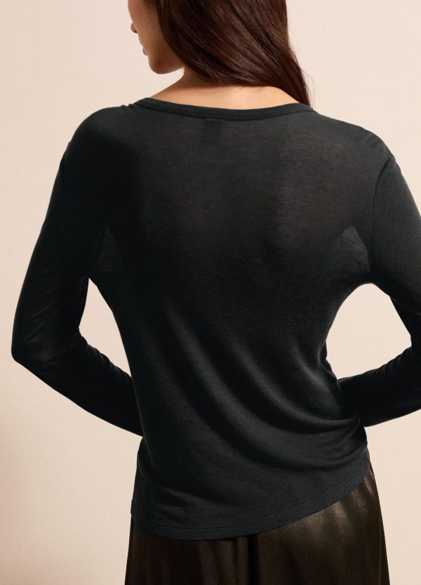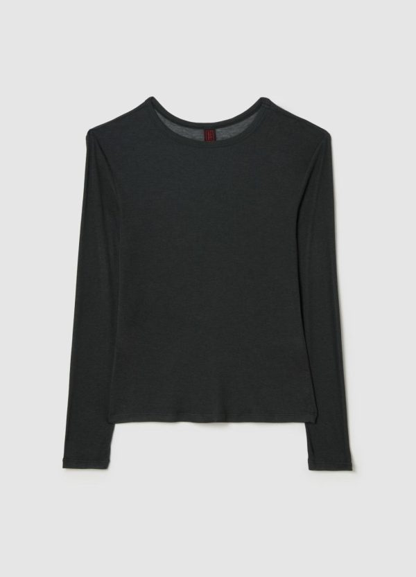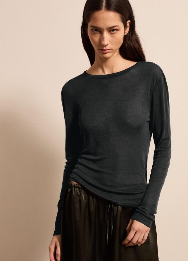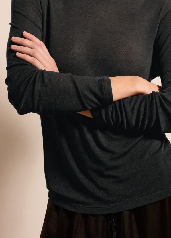 T-shirt realizzata in Lyocell, seta e lana. Scollo rotondo. Maniche lunghe. Fit morbido.