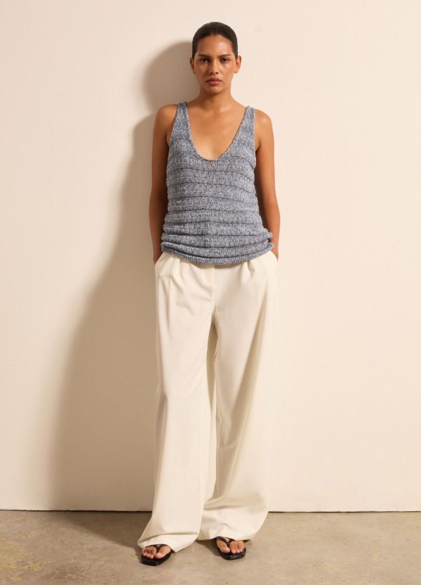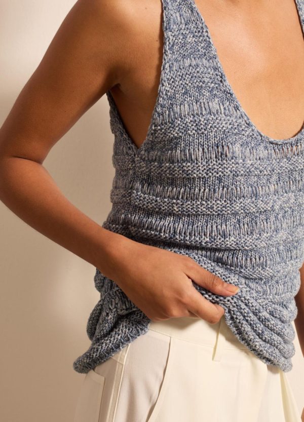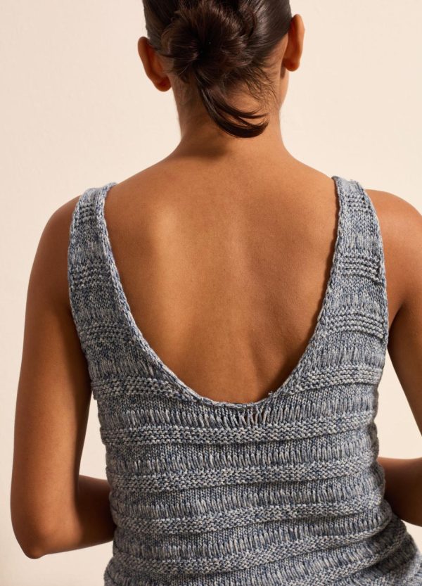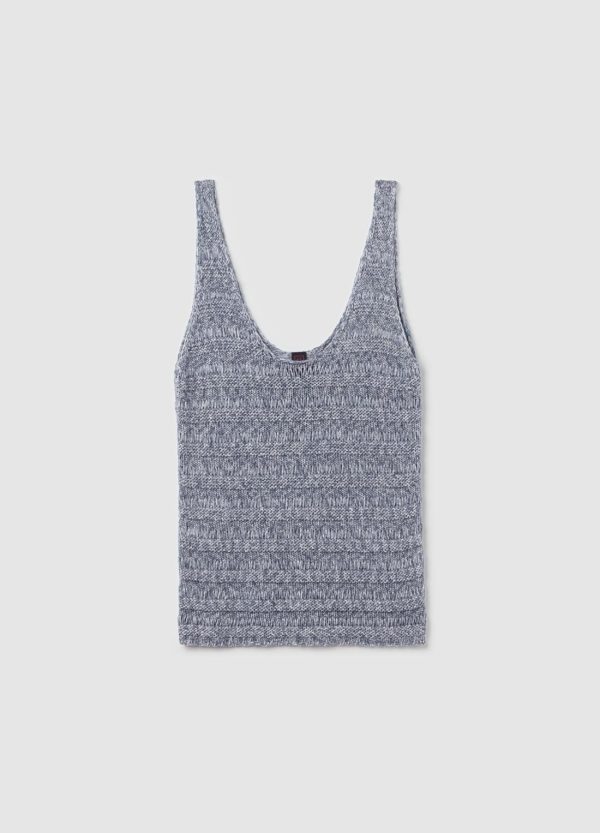 Tank top realizzato in filato di puro cotone mélange. Fit morbido. Scollo a V fronte e retro. Spalline larghe. Componibile con cardigan abbinato.